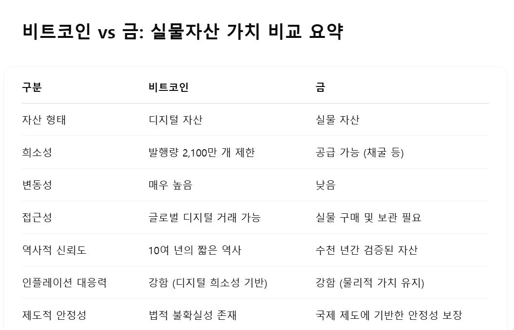 비트코인과 금은 단순한 수익률 비교가 아닌, 투자자의 목표와 자산 전략에 따라 선택의 기준이 달라져야 하는 자산입니다.